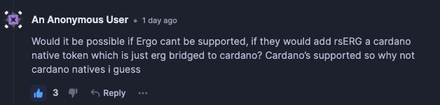 I like this idea, if Ergo can’t be added to NDAX, could you add cardano native tokens such as rsERG? The cardano community would love to see more native tokens supported. Things like rsERG, snek, etc.